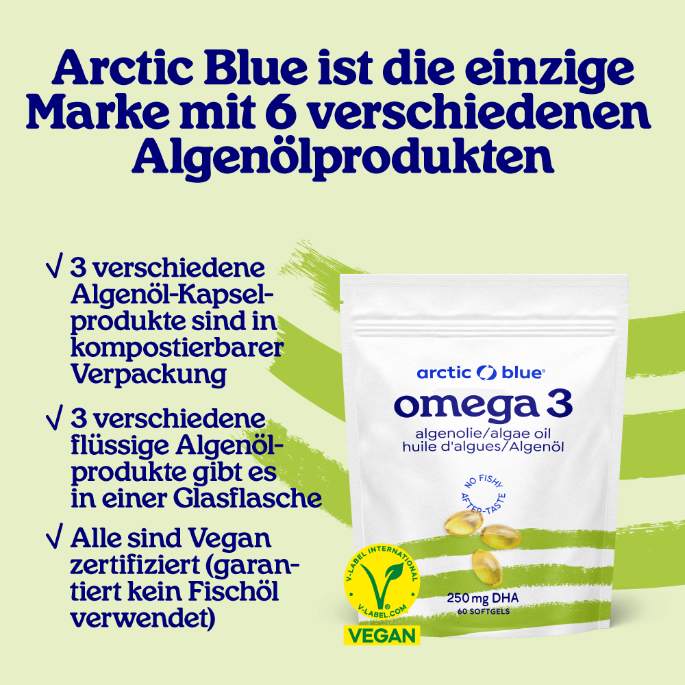 Wenn Kinder eine Kapsel schlucken können, ist sie sicherlich geeignet. Andererseits ist dieses flüssige Algenöl eine Option, die auch für kleine Kinder geeignet ist, z. B. zur Verwendung in Joghurt. Bald werden wir auch vegane Gummibärchen anbieten, die für Kinder sehr praktisch sind.