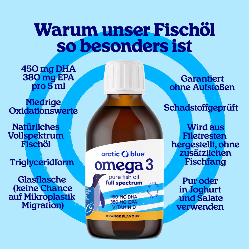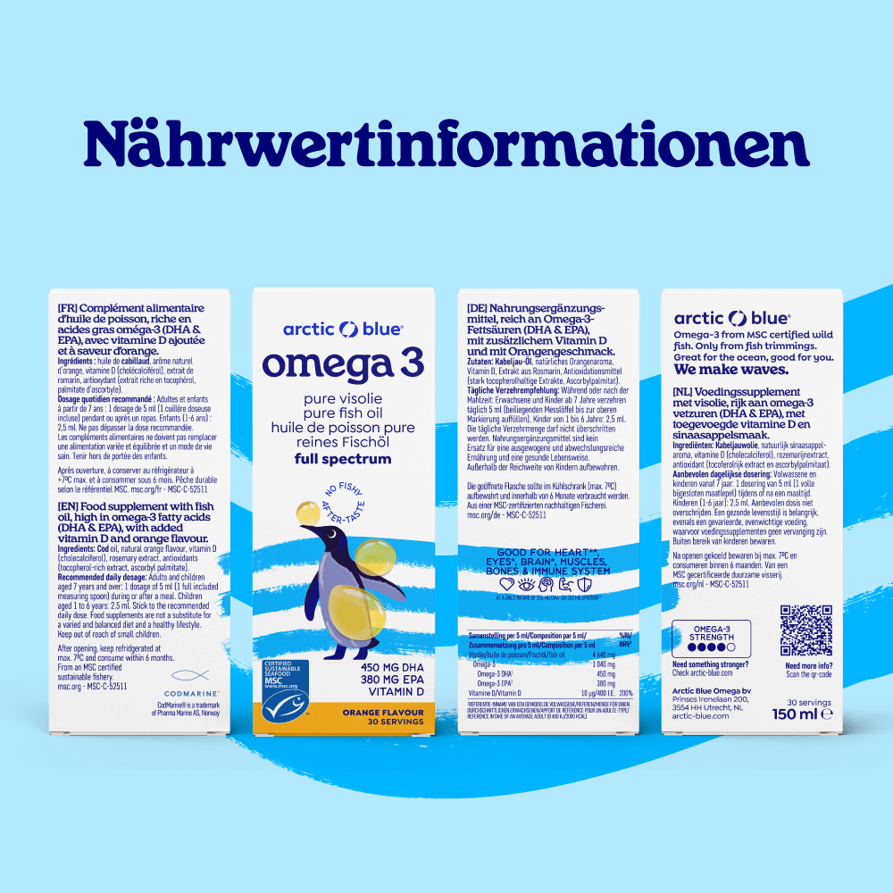 Mit wertvollen Omega-3-Fettsäuren DHA & EPA und Vitamin D3 – ideal für Gehirn, Augen, Herz, Knochen, Muskeln und das Immunsystem.