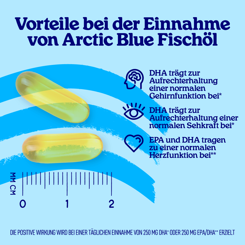 1 Kapsel enthält 250 mg DHA und 400 mg EPA.