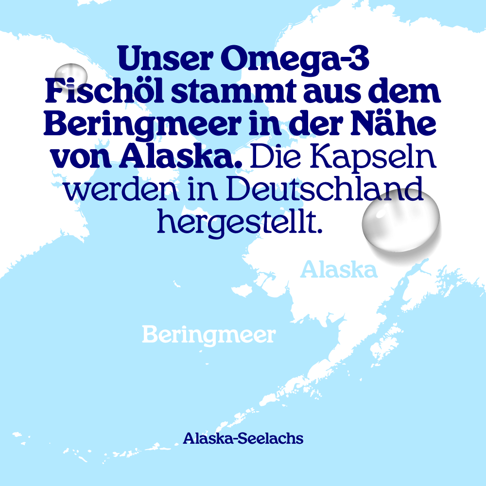 Pure Alaska Fischölkapseln werden aus Alaska-Seelachs aus dem Golf von Alaska und dem Beringmeer hergestellt. Dies ist der nördlichste Teil des Pazifiks und grenzt an den Nordpol. Das Filet des Alaska-Seelachses kommt in den Supermarkt, und die Filetabfälle werden zu Fischöl verarbeitet. Für dieses effiziente Verfahren werden keine zusätzlichen Fische gefangen. Arctic Blue hat damit das strengste Qualitätszeichen für Fischöl erhalten: das blaue MSC-Gütesiegel. In einer modernen Anlage in den USA wird das Öl gereinigt und konzentriert und es wird sichergestellt, dass das Fischöl seine Frische behält (= niedriger Totox-Wert). Die Frische ist in der Tat ein Maß für den Zustand der empfindlichen Omega-3-Fettsäuren. Frisches Fischöl wird daher niemals platzen oder einen Nachgeschmack hinterlassen. Arctic Blue Fischölkapseln sind daher auch für schwangere und stillende Frauen geeignet.