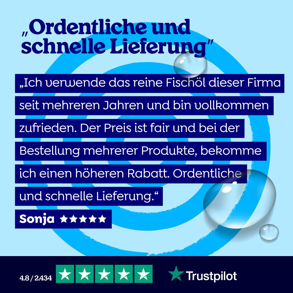 1 Messlöffel enthält 380 mg EPA + 450 mg DHA.