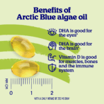 With DHA Omega-3 fats, good for brain function and eyes. +Vitamin D3, good for bones, muscle function and immune system.