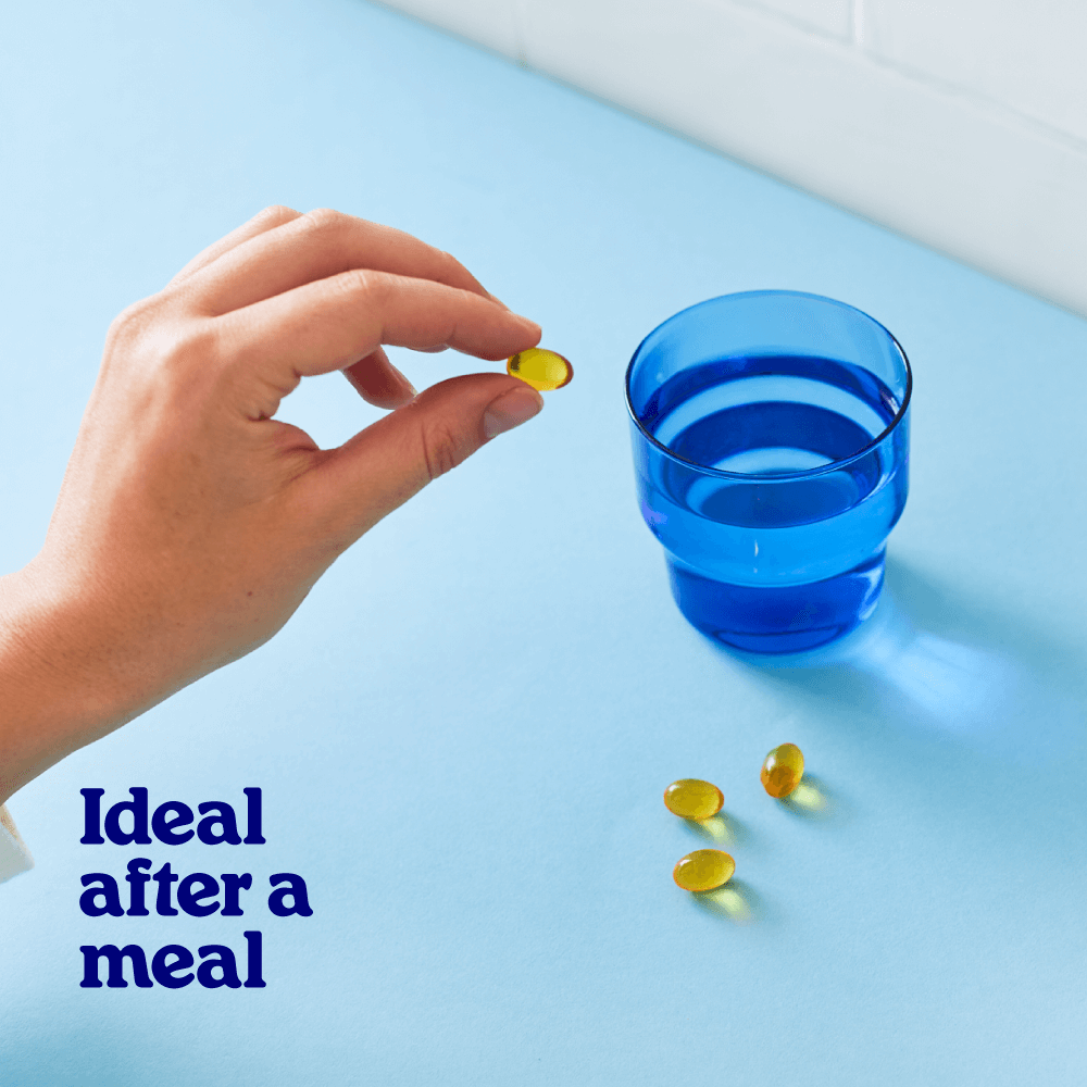 Do not take algae oil capsules on an empty stomach, but right before or right after a meal.