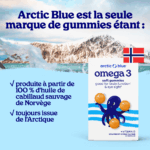 Nous avons relevé ce défi et résolu les inconvénients. Les gommes oméga-3 d'Arctic Blue sont fabriquées à l'aide d'une technologie d'émulsion spéciale qui fait de l'huile de poisson oméga-3 l'ingrédient principal (c'est-à-dire pas de sucre ni d'adjuvant) et 1 gomme contient 250 mg de DHA et 70 mg d'EPA, ce qui est énorme. C'est 5 fois plus (DHA+EPA) que les autres gommes aux oméga-3. C'est comparable aux acides gras oméga-3 de poisson contenus dans 1 piqûre (petite bouchée) de hareng.