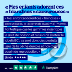 Bien sûr, comme tu l'attends de nous, l'huile de poisson que nous utilisons est fabriquée uniquement à partir d'abats découpés en filets de cabillaud norvégien, qui est certifié MSC.