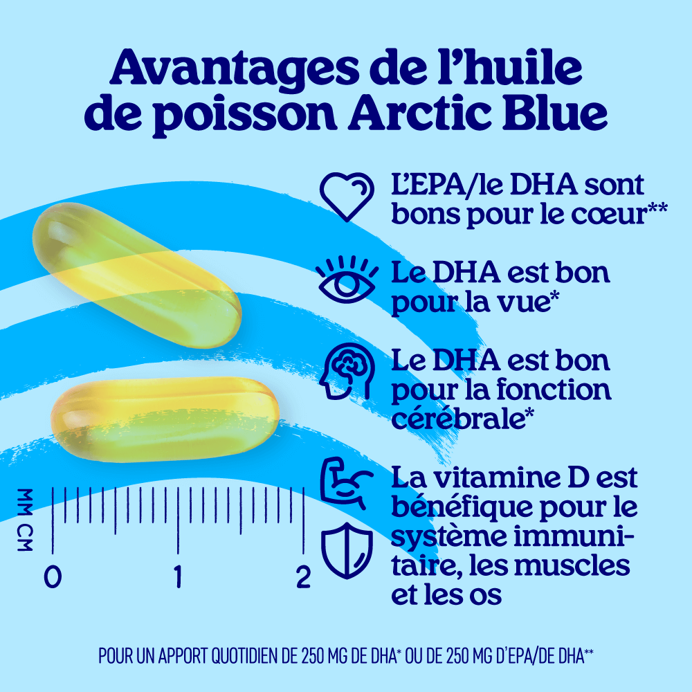 Avec des acides gras oméga-3 DHA et EPA, bons pour les fonctions cérébrales, les yeux et le cœur, +Vitamine D3, bonne pour les os, les fonctions musculaires et le système immunitaire.