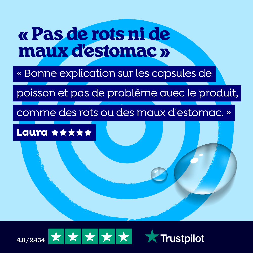 Si les enfants peuvent avaler une gélule, celle-ci est tout à fait adaptée. Il s'agit toutefois d'une grande gélule, nous avons également des petites gélules dans notre gamme. Tu peux aussi opter pour l'huile de poisson liquide, à utiliser par exemple dans un yaourt. L'avantage est que les enfants obtiennent plus d'oméga-3 ainsi que de la vitamine D. De plus, nous avons maintenant aussi des gommes pour les enfants.