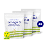 Schizochytrium sp. Algenolie, glycerol, gemodificeerd zetmeel, carrageen, hoog oliezuur zonnebloemolie, plantaardige vitamine D3 (cholecalciferol), natuurlijk rozemarijn extract, antioxidant (natuurlijke tocoferolen, ascorbylpalmitaat), zuurteregelaar (dinatriumfosfaat). Plantaardige algenolie wordt gemaakt van gekweekte microalgen in een gesloten systeem zonder milieu invloeden van buitenaf. Zo’n fermentatieproces lijkt op hoe yoghurt (m.b.v. bacteriën) en bier (m.b.v. gisten) in een fermentor wordt gemaakt De olie wordt uit de algenmassa geperst en er wordt natuurlijk antioxidant toegevoegd om de gevoelige Omega-3 vetzuren te beschermen. Een kleine beetje zonnebloemolie dient om de hoeveelheid Omega-3 DHA constant te houden. De plantaardige vitamine D3 wordt aan de algenolie toegevoegd voordat de capsules worden gemaakt met behulp van zeewier extract (carrageen). Het vitamine E houdende natuurlijke antioxidant beschermt de gevoelige Omega-3 vetzuren. Plantaardige tocoferolen (o.a. alfatocoferol) is vitamine E en beschermt als antioxidant de gevoelige Omega-3 vetzuren. <1 mg per capsule. Ascorbylpalmitaat is de vetoplosbare vorm van vitamine C en beschermt (net als rozemarijn extract) als antioxidant ook de gevoelige Omega-3 vetzuren. < 1 mg per capsule. Schizochytrium sp. is de naam van de algensoort. We zijn wettelijk verplicht deze te vermelden. Glycerol is een verdikkingsmiddel die samen met zetmeel (zie veelgestelde vragen) en carrageen het capsuleomhulsel vormt. Tezamen 25% van de hele capsule. Dinatriumfosfaat is in voeding een standaard zuurteregelaar die in minuscule hoeveelheid (<3 mg) mede zorgt voor stevigheid van de capsule. De capsule is vrij van kunstmatige aroma’s en vrij van conserveringsmiddelen, kleur- of zoetstoffen.